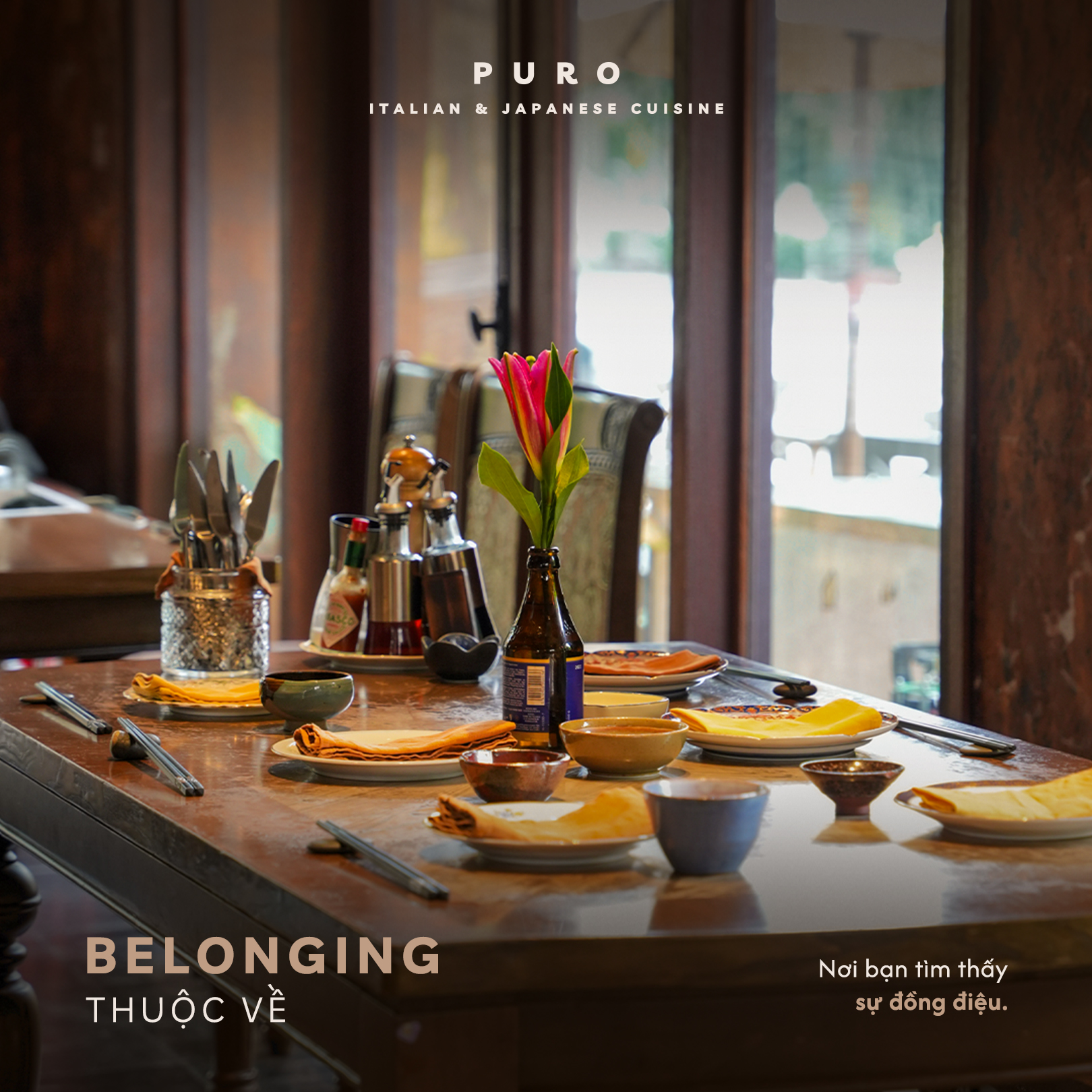 Puro đem tới trải nghiệm không hào nhoáng mà chân thành, thẩm mỹ. Từ không gian tới dịch vụ, tất cả được tạo nên như một phần mở rộng của triết lý ẩm thực đó.